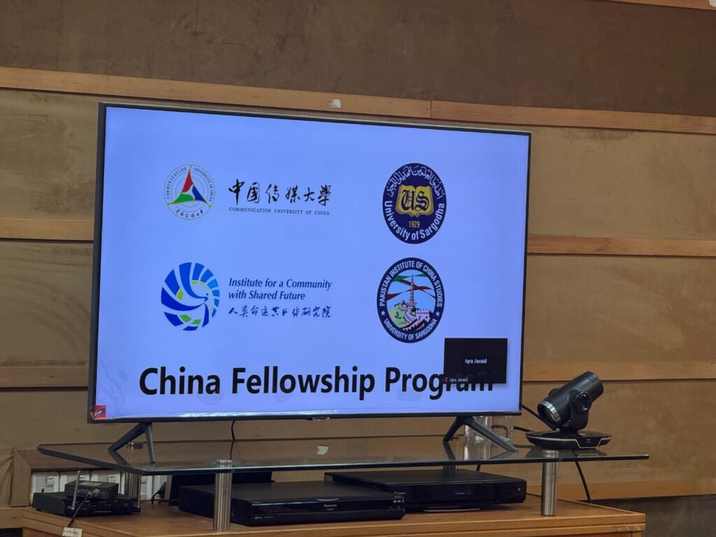 On October 14, 2025, the inaugural session of the Fellowship Program jointly organized by the Institute for a Community with Shared Future (ICSF), Communication University of China (CUC), Beijing, and the Pakistan Institute of China Studies (PICS), University of Sargodha (UoS), was held at the University of Sargodha (UoS), Pakistan.