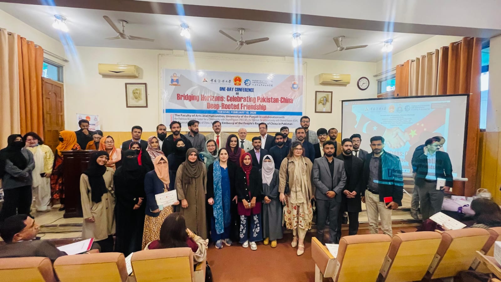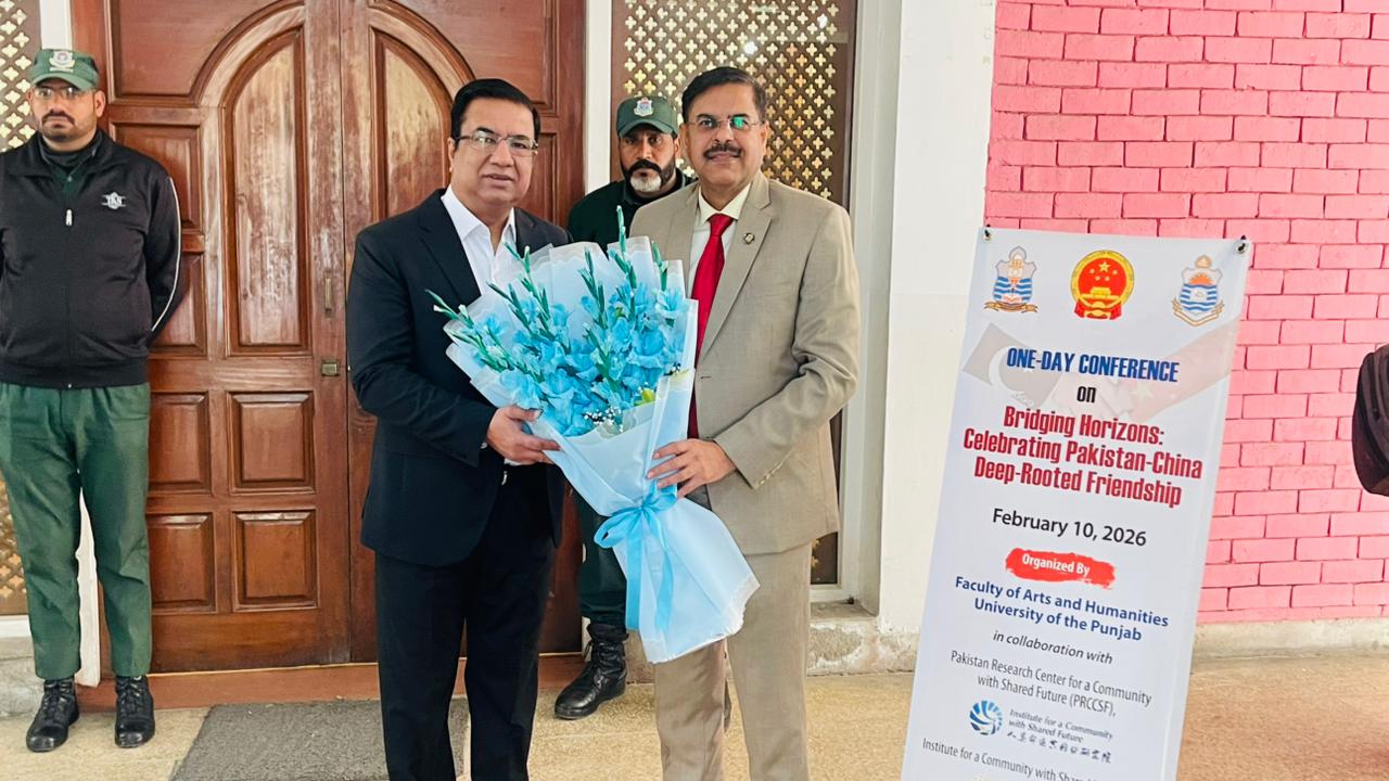 On 10th February 2026, an International Conference titled “Bridging Horizons: Celebrating Pakistan–China Deep-Rooted Friendship” was held at Al-Razi Hall, Quaid-i-Azam Campus, University of the Punjab, Lahore. The conference was jointly organized by the Faculty of Arts and Humanities, University of the Punjab, Lahore, in collaboration with the Institute for a Community with Shared Future (ICSF), Communication University of China (CUC), Beijing, and the Embassy of the People’s Republic of China to Pakistan.