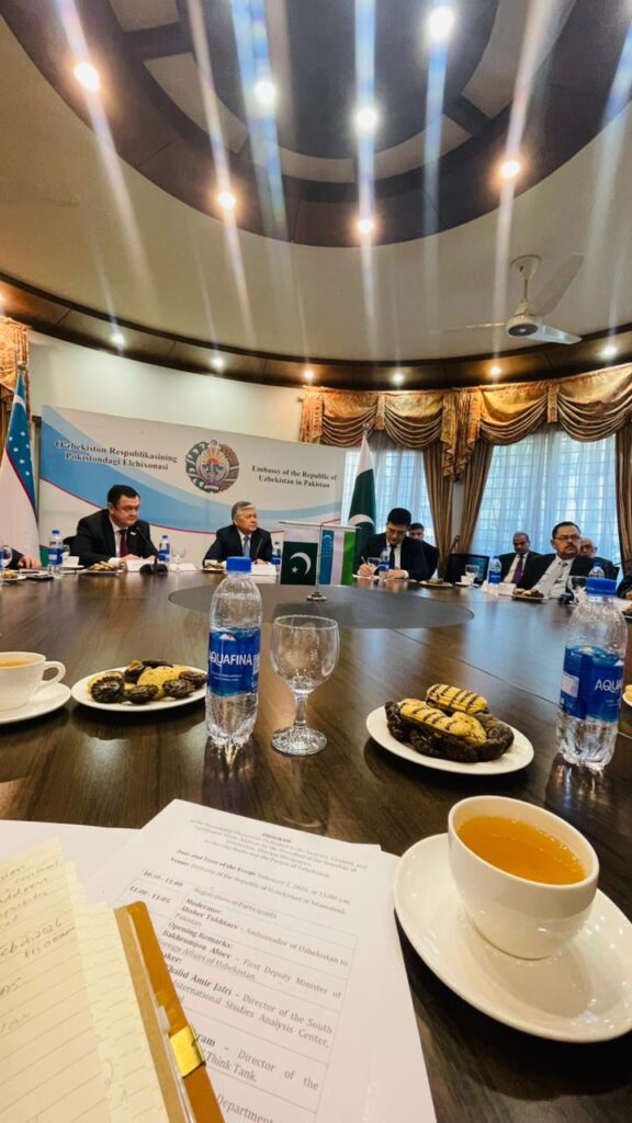 The Roundtable Discussion was moderated by His Excellency Mr. Alisher Tukhtaev, Ambassador of the Republic of Uzbekistan to Pakistan, who highlighted the growing strength of Pakistan–Uzbekistan relations and emphasized the importance of academic and policy dialogue in fostering mutual understanding and cooperation.