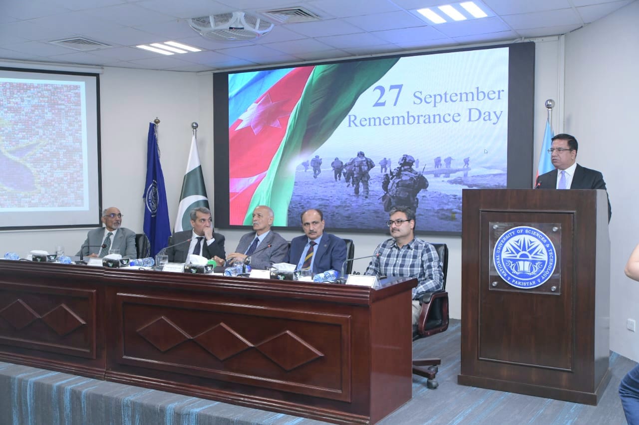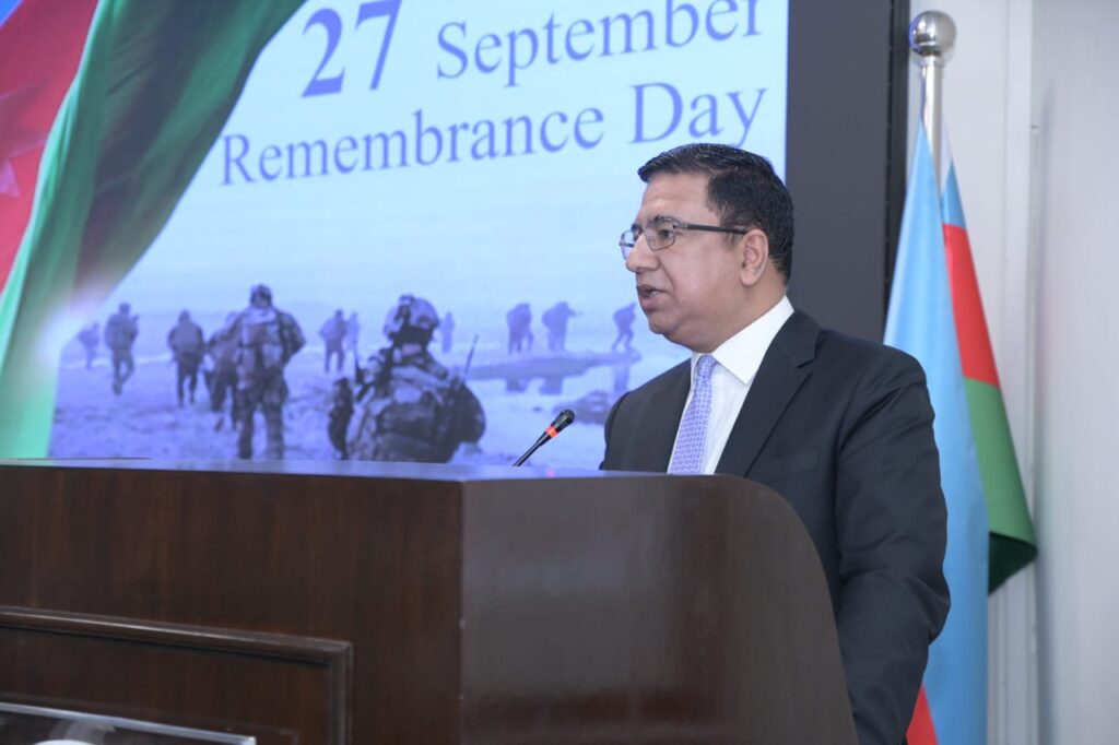 His Excellency Khazar Farhadov, Ambassador of the Republic of Azerbaijan to Pakistan, delivered an impactful address, recounting the history of the conflict and elaborating on the courage of the Azerbaijani people. He recalled that President Ilham Aliyev signed a decree on 2 December 2020 to officially designate September 27 as Remembrance Day.