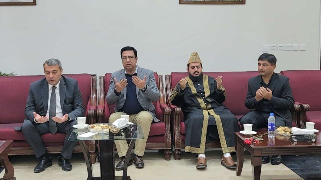On 27 December 2024, Mr. Khalid Taimur Akram, Executive Director, Pakistan Research Center for a Community with Shared Future (PRCCSF), visited the Embassy of the Republic of Azerbaijan to Pakistan to offer condolences to His Excellency Khazar Farhadov, the Ambassador of the Republic of Azerbaijan, and the staff of the Embassy of the Republic of Azerbaijan to Pakistan following the tragic plane crash that occurred near the Kazakh city of Aktau.