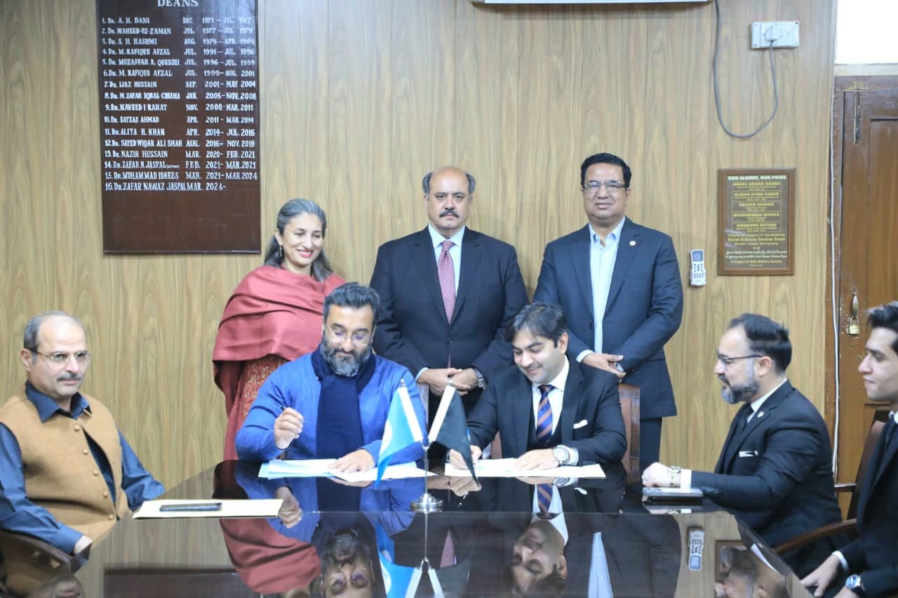 The signing ceremony was attended by Prof. Dr. Zafar Nawaz Jaspal, Dean, Faculty of Social Sciences, Quaid-i-Azam University, Advocate Adil Aziz Qazi, Former Advocate Supreme Court of Pakistan and Vice Chairman Islamabad Bar Council, Mr. Khalid Taimur Akram, Dr. Salma Malik, Director External Linkages, Quaid-i-Azam University; Mr. Malik Qatadah Jamal Khan, Special Advisor to Vice Chairman Islamabad Bar Council, Dr. Alam Zeb, Assistant Professor, School of Law; and Mr. Wajdan Bukhari, Assistant Professor, School of Law, along with other distinguished participants.