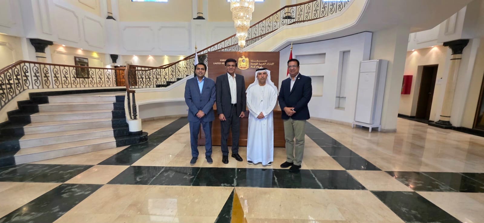 On 15 April 2026, Mr. Khalid Taimur Akram, along with Mr. Nadeem Kiani, Chairman of American Lycetuff DNK School System, and Mr. Aurangzeb Kiani, Executive Director of the same institution, held a productive meeting with His Excellency Salem Mohammed Al Zaabi, the Ambassador of the United Arab Emirates to Pakistan. The meeting centered on enhancing bilateral cooperation in the education sector, highlighting opportunities for deeper institutional linkages and long-term academic engagement.